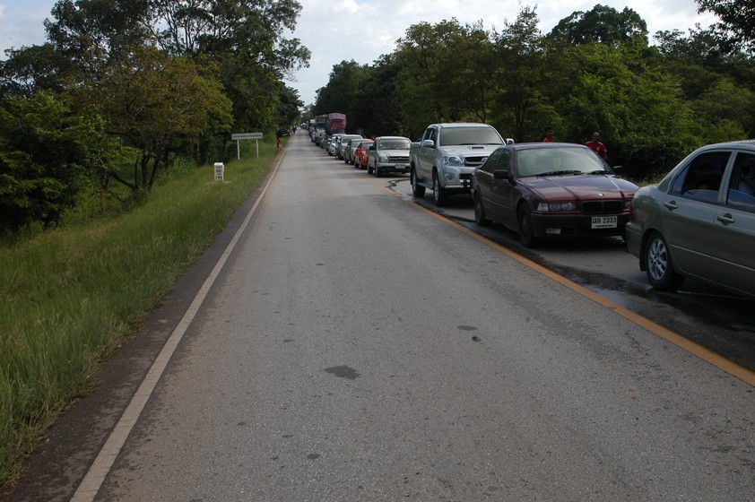 ระหว่างเดินทางไปติดที่ อุทยานแห่งชาติตาพระยา ชั่วโมงครึ่ง เนื่องจากมีอุบัติเหตุบนเขา ปอร่า กะ คาวบอย เดินจนเซ็ง