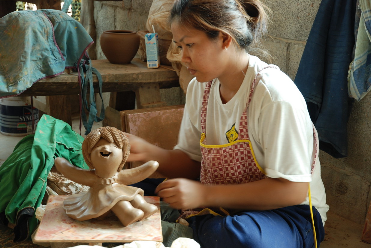 กำลังตกแต่งชิ้นงานก่อนเข้าเตาเผา