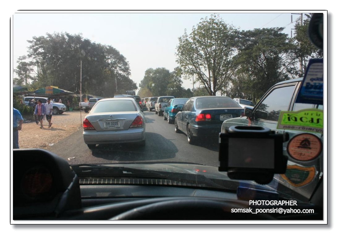 จากกำแพงแสน ระยะทาง 80 กม.เท่านั้น แต่พอเข้าเขต อ.วังด้งสถานที่จัดงานเท่านั้น รถติดเป็นกิโลเลย สองข้างทางมีร้านค้าตั้งเรียงรายขายของ(เหมือนงานเกษตรแฟร์เลย)