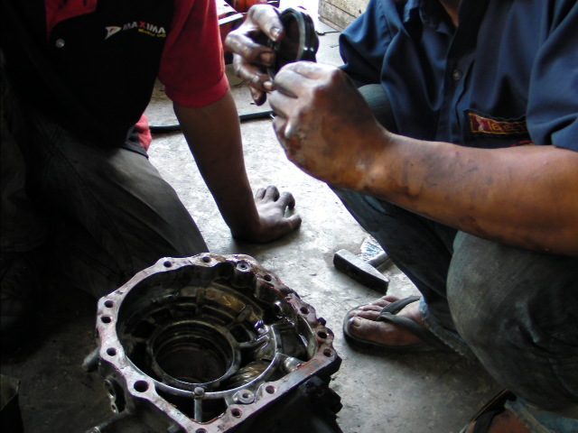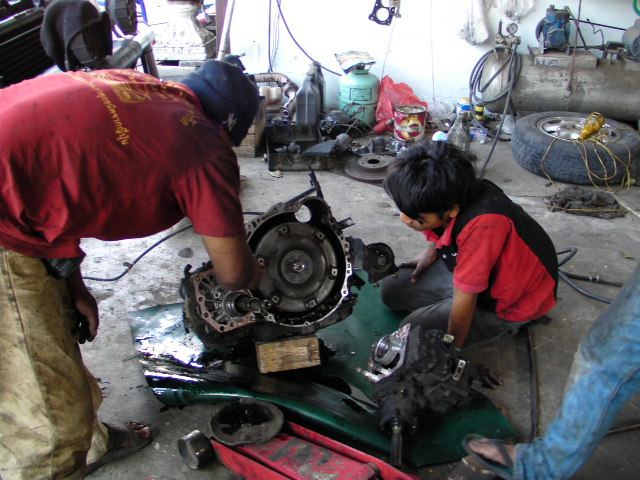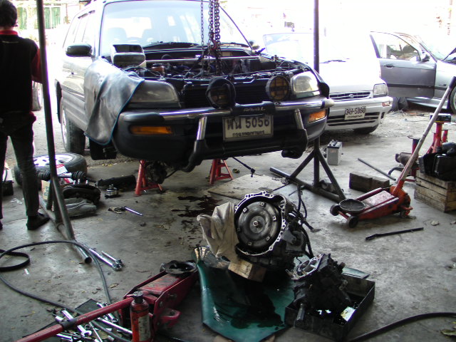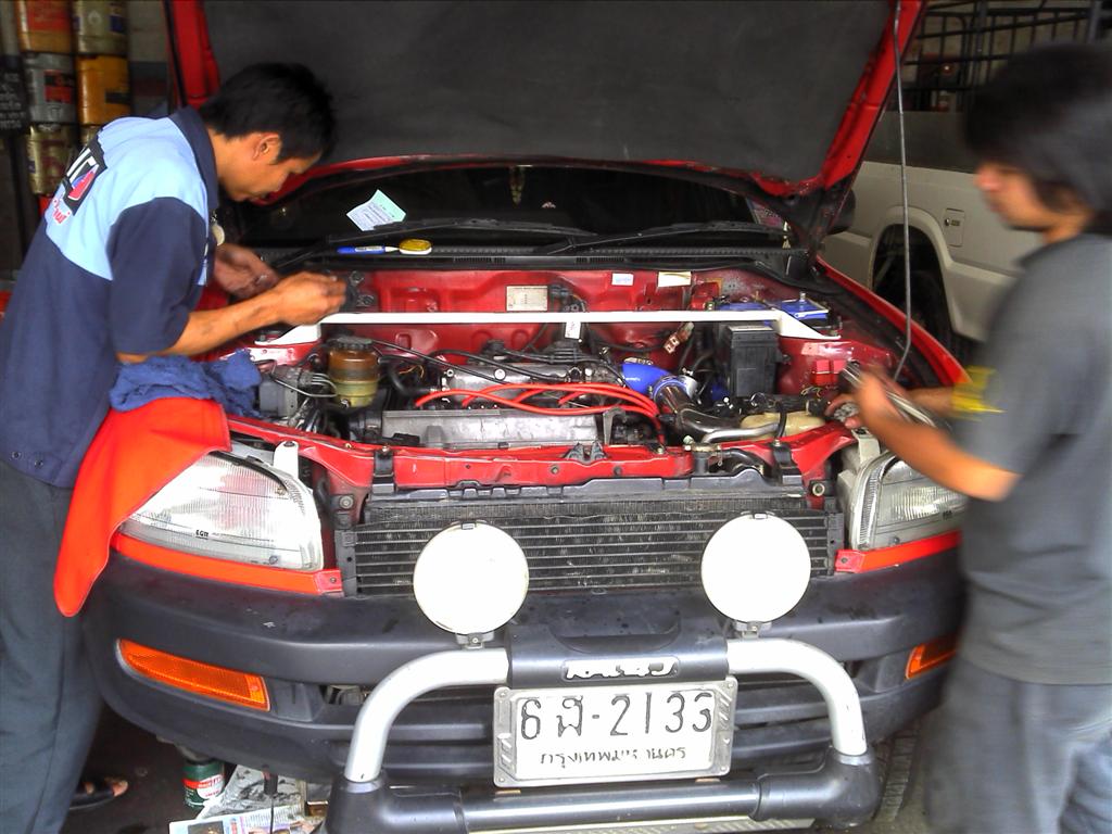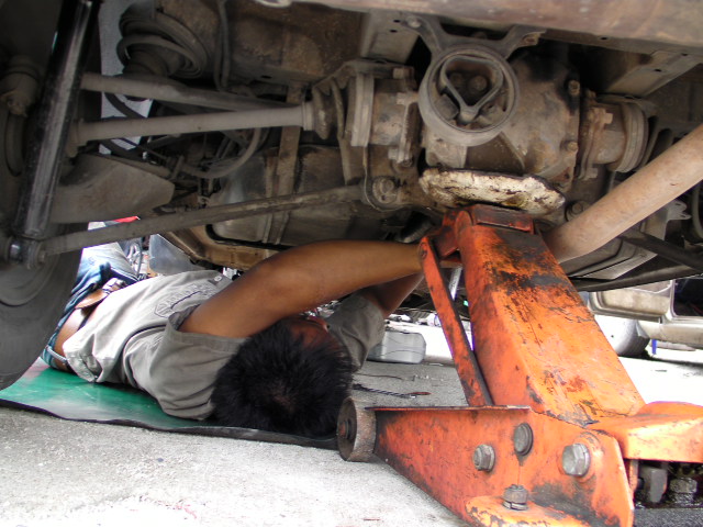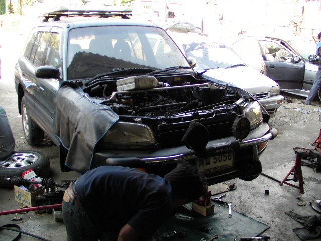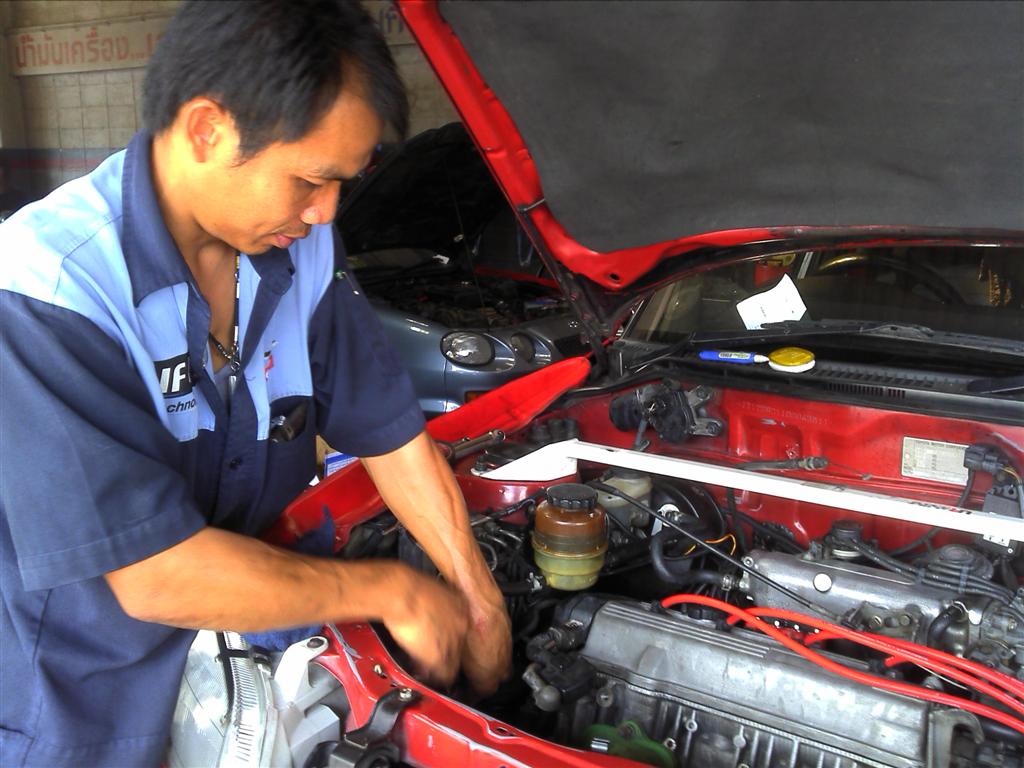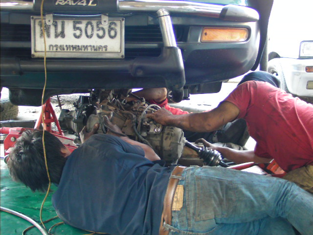 เจ้า Rav เขียวของผมมันมีน้ำมันหยดตรงใต้ท้องมานานแล้วแก้ไม่หายซักที จนเมื่อเดือนที่แล้วไม่ไหวแล้วกลัวจะลาม ปรึกษาคุณCheeza แกเลยพาไปที่ร้านช่างน้อยเป็นอู่อยู่แถวประเวศ ทีแรกนึกว่าเป็นมาจากน้ำมันเครื่องเลยลองขันน๊อตให้แน่นก่อนขับออกไปจอดข้างนอกแป๊ปเดียวก็ยังหยดอยู่ต้องจอดทิ้งไว้ช่างน้อยก็ไล่เช็คละเอียดอีกที แล้วก็ต้องขอขอบคุณ
