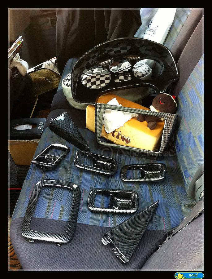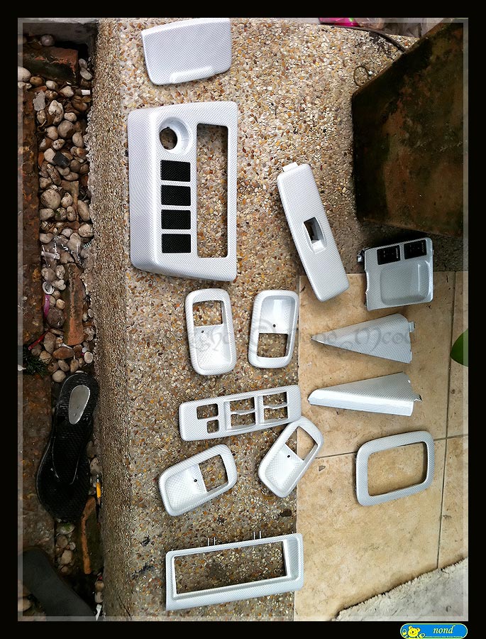 ส่วน สองชิ้นใหญ่ด้านขวา คือ ครอบคอนโซลหน้า กับครอบไฟเบรกดวงที่สาม ราคา 1400