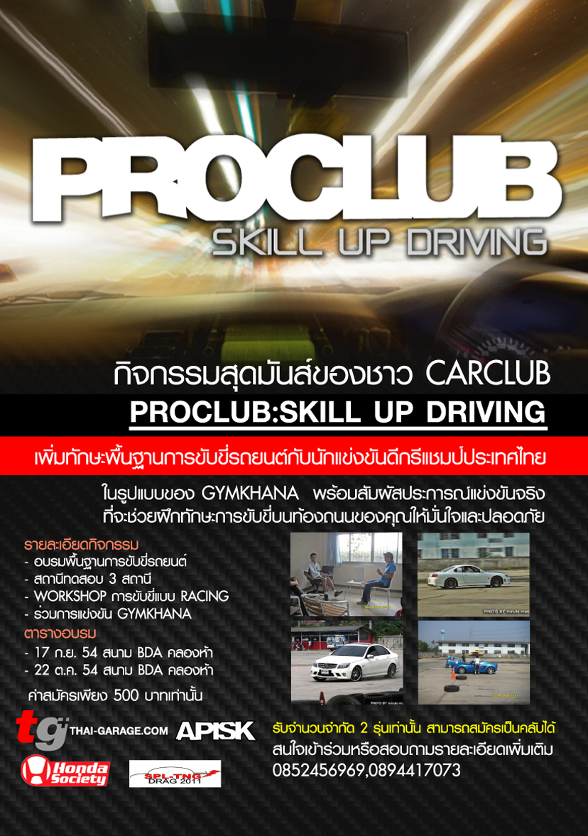 PROCLUB : SKILL UP DRIVING เป็นกิจกรรมการฝึกอบรมทักษะการขับขี่แบบ racing ให้กับผู้ใช้รถทั่วไป