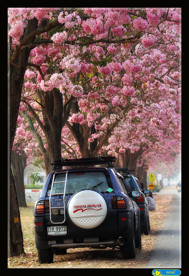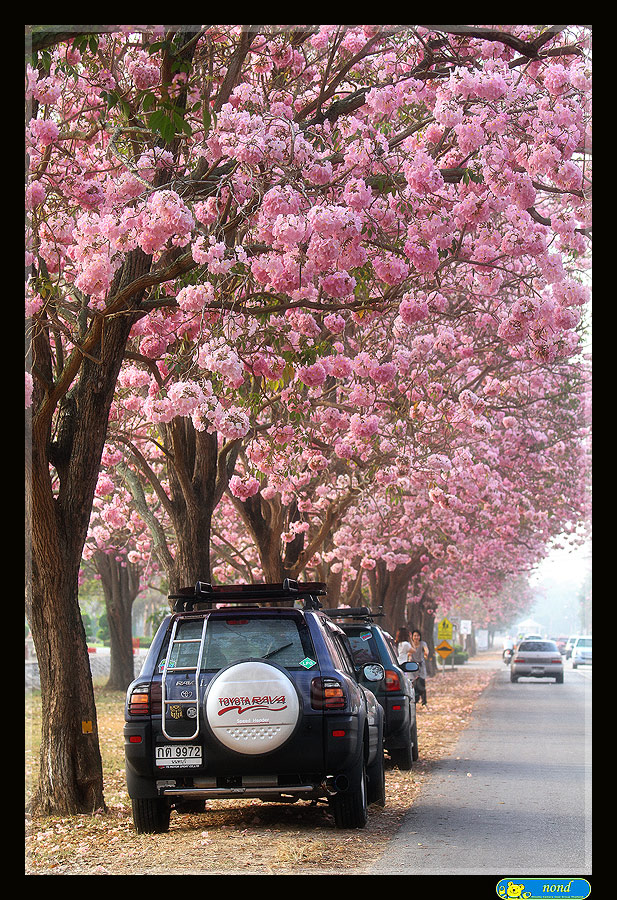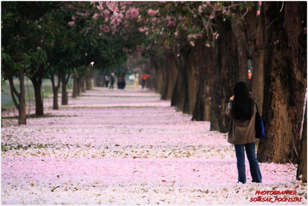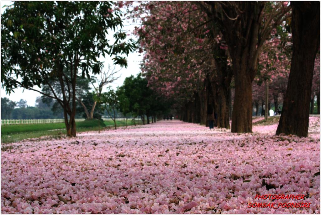 คือ ถนนสายหนึ่งภายในมหาวิทยาลัย จะมีต้นชมพูพันธุ์ทิพย์ที่บานพร้อมๆ กันทั้งถนน