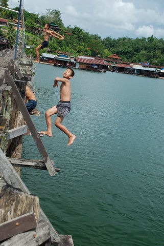 เด็กเล่นน้ำสนุกสนานที่สะพานมอญ