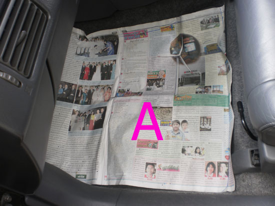ก๊เอากระดาษหนังสือพิมพ์ไปวางพื้นที่วางเท้า
