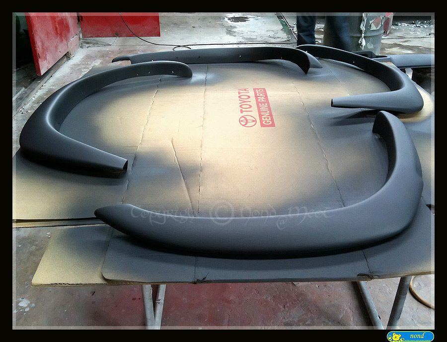 พี่เอ๋ นำเอาชุดกาบข้างของ Type G มาให้ดู ปรากฏว่า มันดัดแปลงลำบาก และต้องเจาะตัวถังมากมาย อีกทั้ง หากใส่โป่งรุ่นนั้น จะโป่งออกมามาก ต้องเปลี่ยนกระทะล้อใหม่ให้ออฟเซ็ตน้อยกว่าเดิม มันจะจบยาก