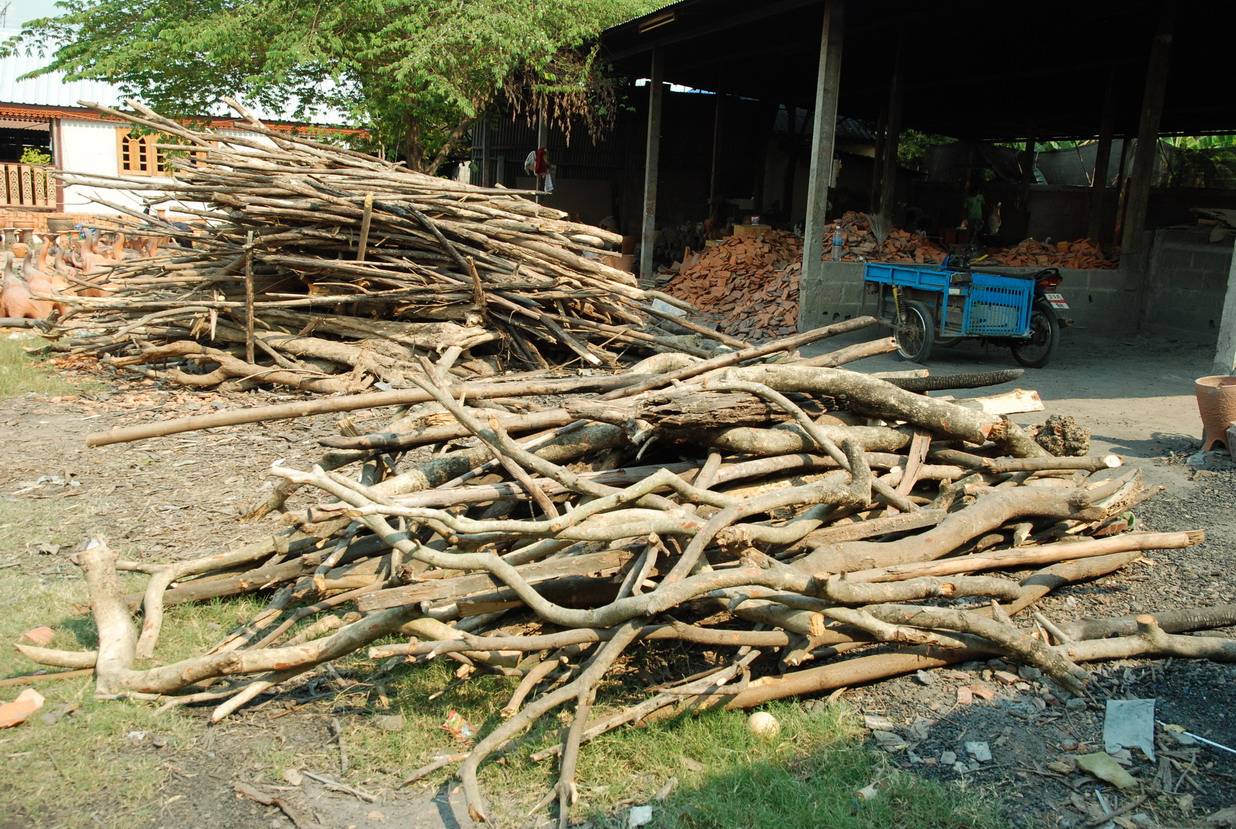 ฟืนที่จะนำมาใช้ในการเผาเครื่องปั้น รู้สึกว่าจะไม่เป็นมิตรกับสิ่งแวดล้อมเท่าไร