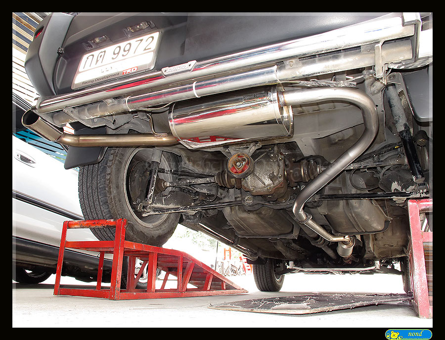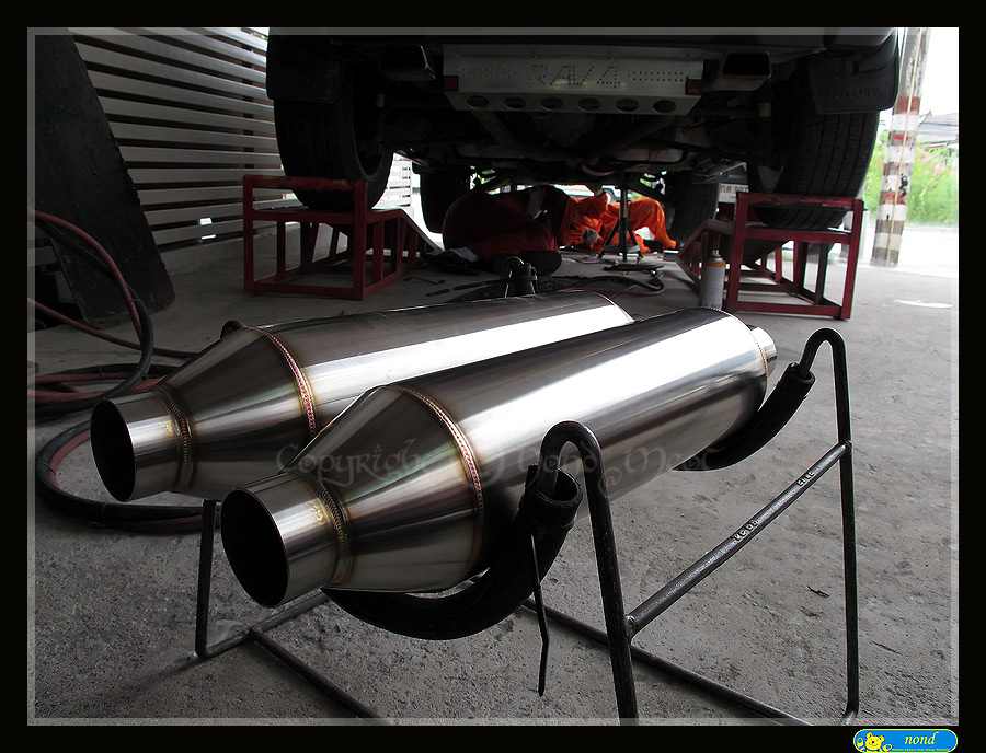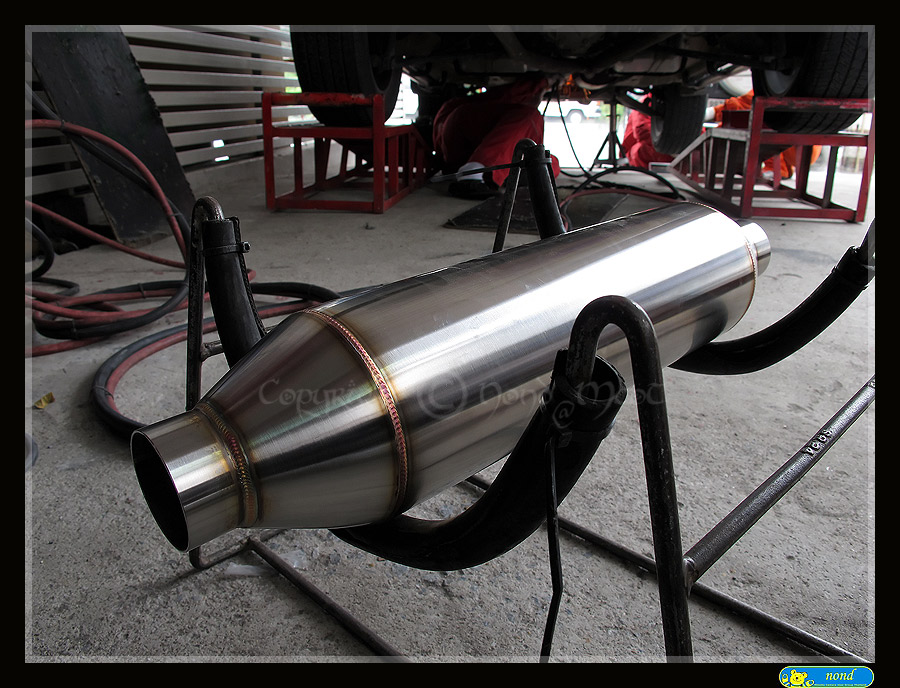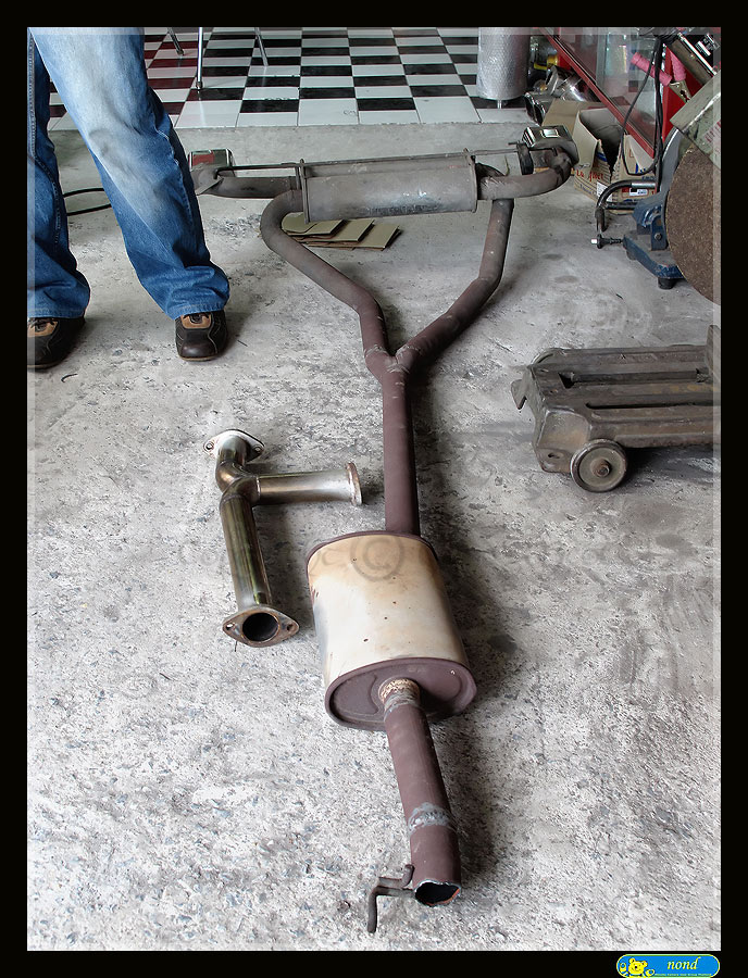 และเนื่องจากตำแหน่งของทางออกมันต่างกัน เลยต้องทำท่อ (ดัดท่อใหม่) จากหม้อพักหลังไปปลายท่อ