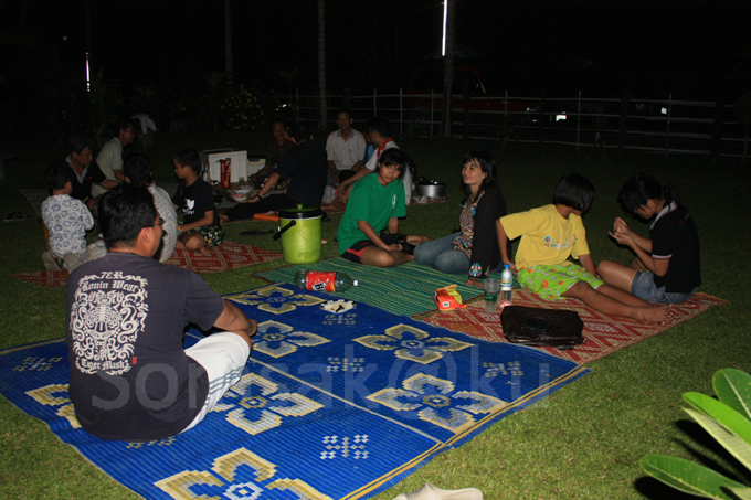 ทานอาหารเย็นร่วมกัน บรรยากาศตอนกลางคืนบนสนามหญ้า