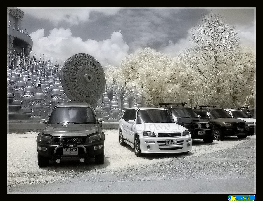 กำลังถ่ายภาพหมู่กัน พร้อมป้าย RAV4 (ที่ให้อารมณ์เหมือนภาพทหารอเมริกันกำลังถ่ายภาพกับปลาตัวยาวๆ ที่อ้างว่าเป็นพญานาค)