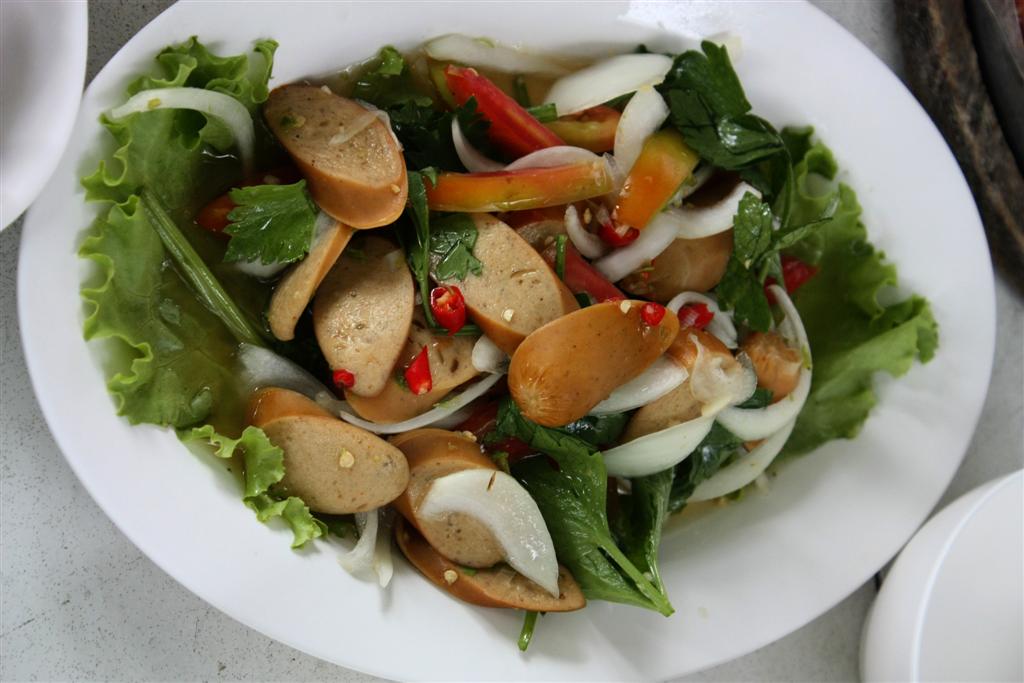 จานนี้ยำไส้กรอกรมควัน ใช้ไส้กรอกอย่างดีสุดยอด