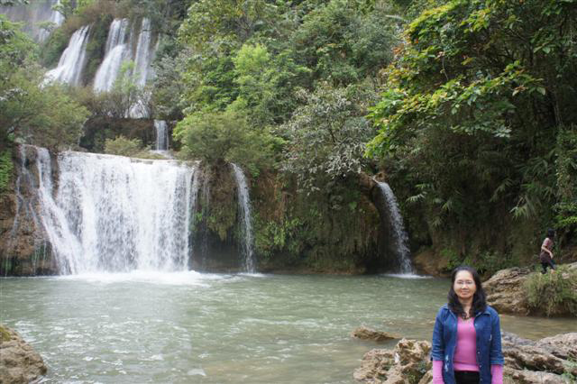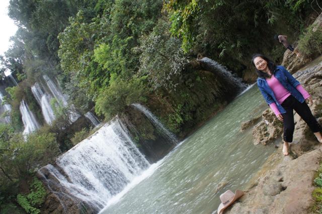 ข้างหลัง มีเสียงน้ำตกดัง พร้อมไอน้ำปลิวมากระทบ เย็นสะบายตัว