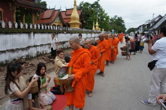 การใส่บาตรข้าวเหนียวพระสงฆ์มากกว่า 200 รูป