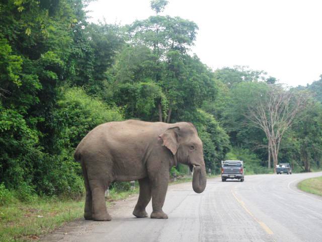 ผมผ่านใกล้เค้ามากไปหน่อยเจองวงจับแร็คโยก ผมกลับช่างที่ไปด้วยกันเหวอเลย แต่ไม่มีอะไร เล่าให้เจ้าหน้าที่ฟังเค้าแนะนำ ถ้าเจอโขลงช้างหรือเดี่ยวๆข้ามให้หยุดให้เค้าข้ามไปให้หมดเสียก่อนอย่าเร่งแซงหรือบีบแตรไล่ เค้าไม่ชอบ ช่างก็เพิ่งบอกเห็นเค้าหยุดก็เลยนึกว่าให้ผมไปได้