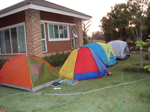 คุณเป้ครับ บ้านหลังนั้นรับได้ประมาณ 30 คนครับ มีห้องครัวพร้อมอุปกรณ์ทุกอย่าง จาน ชาม ช้อนก็มี สามารถทำอาหารได้เองตามสบาย มีห้องนอนใหญ่ 1 ห้อง ห้องนอนเล็ก 2 ห้อง ห้องรับแขก(ใหญ่เท่าห้องนอนใหญ่) 1 ห้อง ห้องครัว 1 ห้อง มีดาดฟ้าสามารถนอนบนดาดฟ้าได้ด้วย และยังมีสนามหญ้าสามารถกางเต๊นท์ได้อีก 10 กว่าหลัง เดี๋ยวหลังปีใหม่จะลงรูปให้ดูครับ แต่ถ้าไปพักต้องจ่ายให่คนเฝ้าประมาณ 3000 บาท เพื่อเป็นค่าทำความสะอาดและค่าที่พักครับ อ้อลืมไปครับ ห้องน้ำพร้อมเครื่องทำน้ำอุ่นมี 3 ห้องครับ ถ้ามีเครื่องเสียงไปก็สามารถเปิดได้สบายครับ ไม่รบกวนใครๆ เจ้าของบ้านกลับเมื่อไหร่แล้วจะบอกครับ