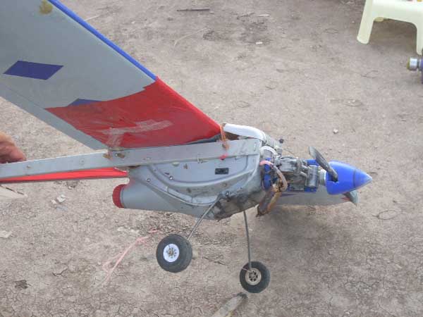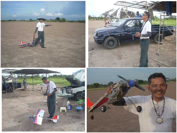 คุณ สเถียร กับ"ไอ้ก้าง" ซึ่งเป็นงานประดิษฐ์เครื่องบินจากเศษวัสดุหลือใช้ แกลลอนน้ำมั้นเครื่อง กับรางหุ้มสายไฟ