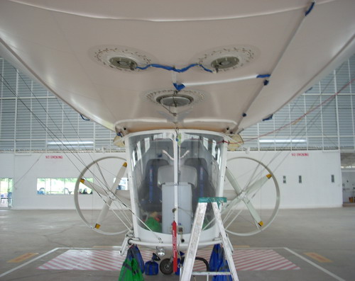 ให้ก๊าฮีเลียม ครับ ปริมาณดูจากขนาดแล้ว เส้นผ่าศูนย์กลางประมาณ 10 ม. ยาวเกลือบ 40 -43 ม.ผมคำนวนหยาบๆ ไม่น่า ใช้ก๊าซต่ำกว่า 2200 ลบ.ม.ครับ