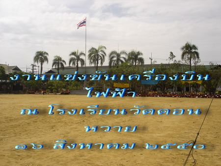 กิจกรรมการแข่งขันเครื่องบินเล็กเนื่องในงานสัปดาห์วิทยาศาสตร์แห่งชาต ณ โรงเรียนวัดดอนหวาย(นครรัฐประสาท) อ.สามพราน จ.นครปฐม ได้นำเสนอมาโดยสมบูรณ์เท่าที่สามารถหาภาพมาได้ ขอบพระคุณนักบินทุกท่านที่มาช่วยทำให้งานมีสีสันและผ่านไปด้วยดี ขอบคุณคุณทิพย์แห่งร้านศิลา สามพราน และขอบคุณทุกท่านที่ให้ความสนใจเข้ามาชมกิจกรรมนี้ ปีหน้าพบกันใหม่ครับ สวัสดีครับ