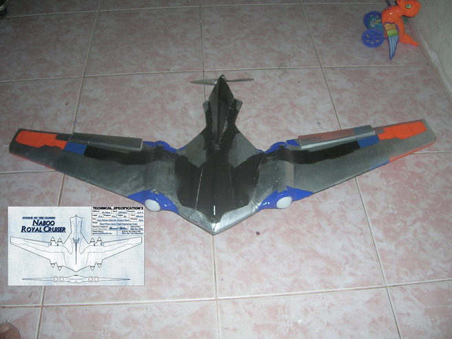 - ปีกไม่มีมุมบิด และไม่มี Fin ( แผ่นแนวตั้ง ) บินยากมากครับ... แนะนำให้ทำ Fin แนวตั้งสูงสัก 3-4 นิ้ว ( ดูรูปในเวบที่แนบมา )