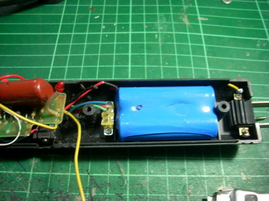 ผมใช้ Li-ion ก้อนกลมๆ Size แบบ NiCd AA แต่โตกว่านิดหนึ่ง ใส่ลงพอดีครับ ต้อง ตัดๆ ข้างในหน่อยหนึ่ง สะใจครับ