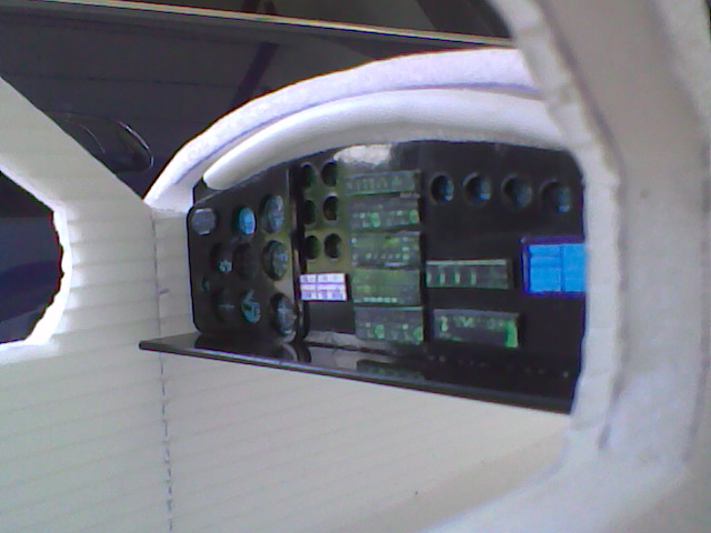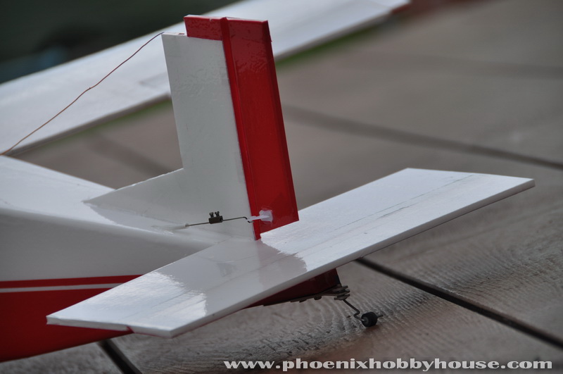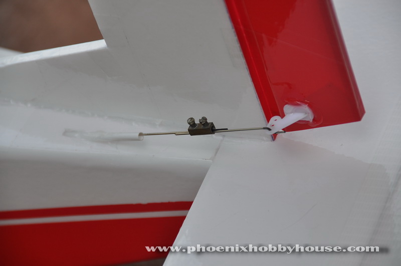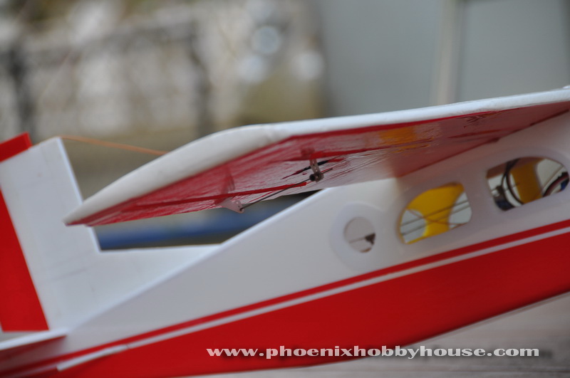... servo วางที่ปีก 2 ตัว เชื่อมต่อกันด้วยสาย Y ควบคุมปีกเล็กแก้เอียง ส่วนอีกสองตัว วางไว้กลางลำสำหรับควบคุมชุดพวงหาง