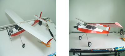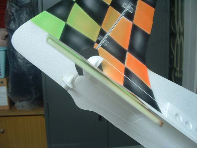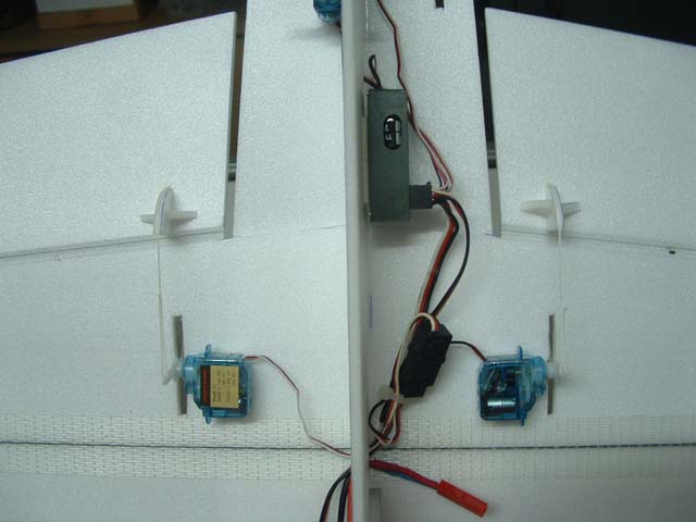 ส่วนที่ Aileron ก็ใช้ เซอร์โว 2 ตัวแปะด้วยเทปกาว2 หน้า เจาะรูให้แขนเซอร์โวโผล่ขึ้นไป และใช้แบบ pull-pullเหมือนกัน