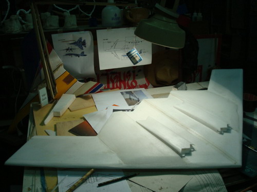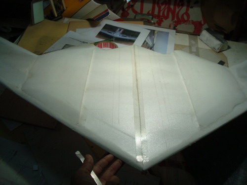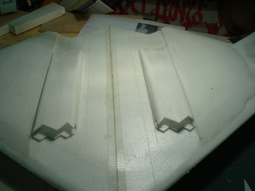 ใช้โฟมอัด ๕ ม.ม. เสริมแอร์ฟรอยด์ด้านบนตามแบบของจริง ก็ไม่รู้เหมือนกันว่ามันจะมีผลต่อการบินอย่างไร ทำเพื่อให้เหมือนสเกลมากที่สุดไว้ก่อน เรื่องอื่นค่อยว่ากันทีหลังครับ
