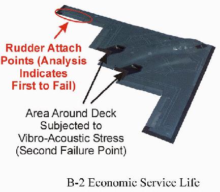 Rudder ของ B2 จะเป็นแบบที่เรียกว่า Drag Rudder อยู่ที่ปลายปีกทั้งสองข้าง