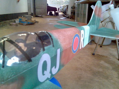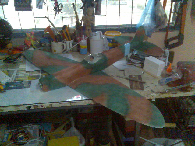 Split fire พ่นสีด้วยแอร์บรัช ลำตัวโฟม ติดทับสกอตเทปใส กว้างปีก 1 เมตรครับ...สมชาย