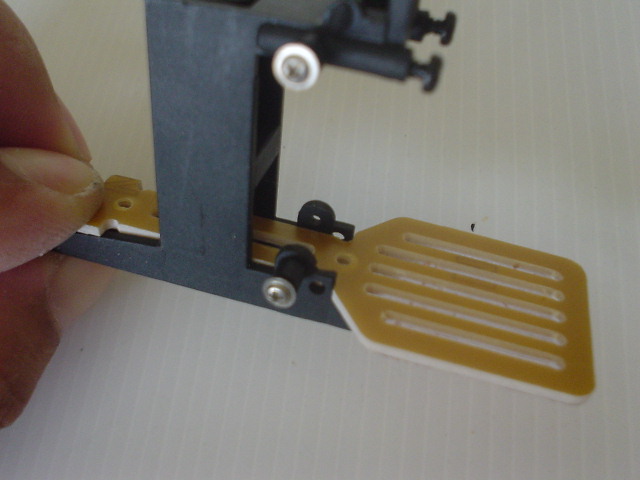 ทำการใส่ลูกปืนกดสายพาน ของ King2 โดยใช้น็อต 6 เหลี่ยมดำที่ให้ไป และเสริมด้วย ไฟเบอร์ เล็กๆ ตามรูป จน ลูกปืนกดสายพาน มีระดับ อยู่ กลางบูม พอดี