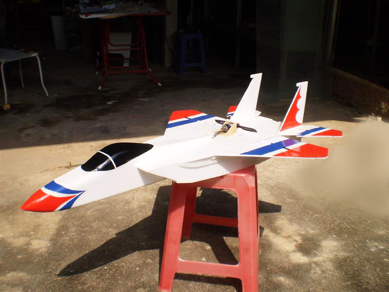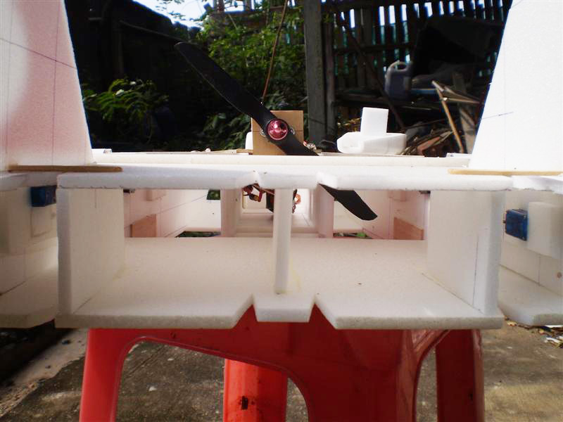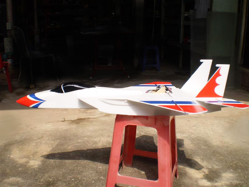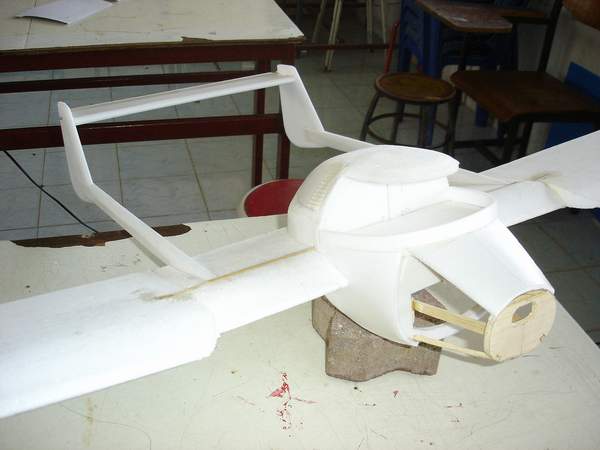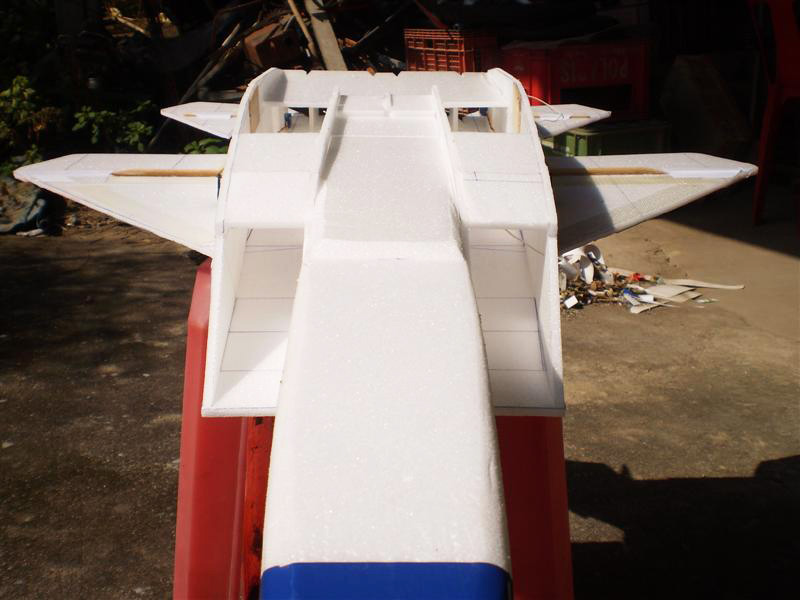 ลำนี้ก๊อปเขามาจากกระดาษ A 4 ครับ แล้วผมก็เอามาขยายอีกทีให้ใหญ่ขึ้น เพื่อลดความเร็วขณะบินลงมาหน่อย แบบเดิมเขาทำมาเป็นแผ่นโฟมแบนๆ แล้วผมก็มาเติมส่วนหัวให้เป็นกล่องซะ จะได้มีมิติที่ดีขึ้นครับ