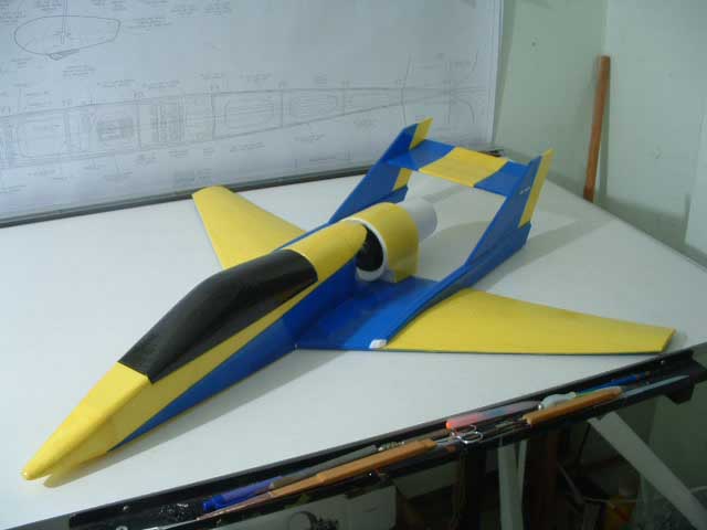 หลักจากที่ทำชุดหางใส่เข้าไปเป็นที่เรียบร้อยแล้ว ก็ทำสีด้วย OPPเทป ซึ่งสีที่ใช้ในลำนี้ก็ยังแบแบบเดิม คือ น้ำเงิน เหลือง เพราะว่า สวยดี และมองง่ายเมื่ออยู่บนฟ้า