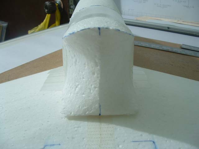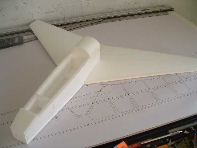 ส่วนปีกนั้นก็ตัดจากโฟม เกรดAA ด้วยลวดความร้อน เช่นกัน ทำทีละข้าง แล้วค่อยเอามาชนกัน ด้วยกาว