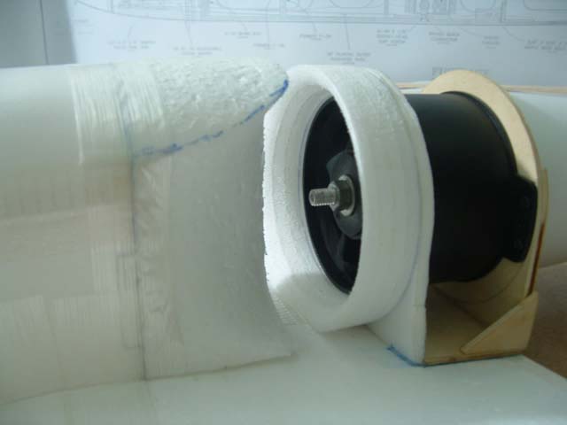 เอาโฟมก้อนมาแปะเข้าไปที่หลังส่วนลำตัวเครื่อง แล้วเหลาให้เว้าดังภาพ