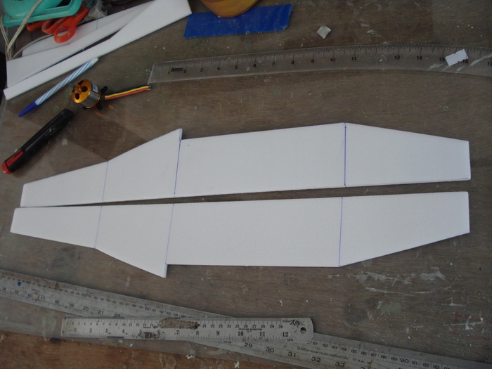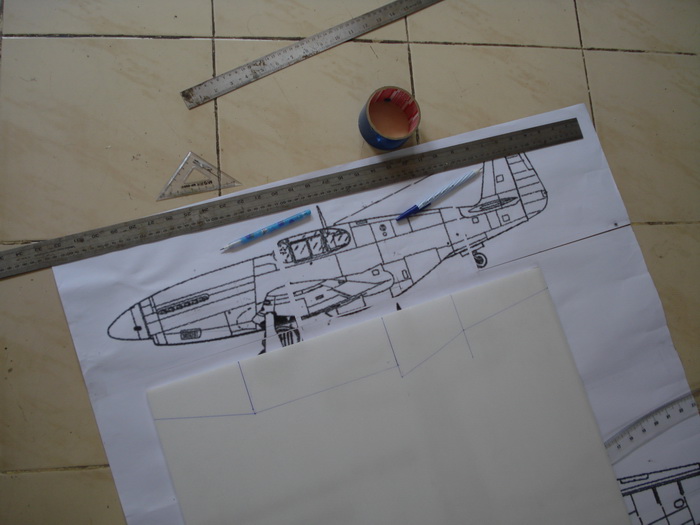 เริ่มการสร้างกันเลยครับตามสไตล์ของผม นิยมใช้ภาพสามวิว (ขอขอบคุณคุณวิตเตอร์ ที่แนะนำและปริ้นขยายภาพสามวิวให้ผมครับ) ขยายเท่าตัวที่จะสร้าง ตามแปลนปีกสามสิบนิ้วผมยืดเองให้เป็นสามสิบหกนิ้วครับ