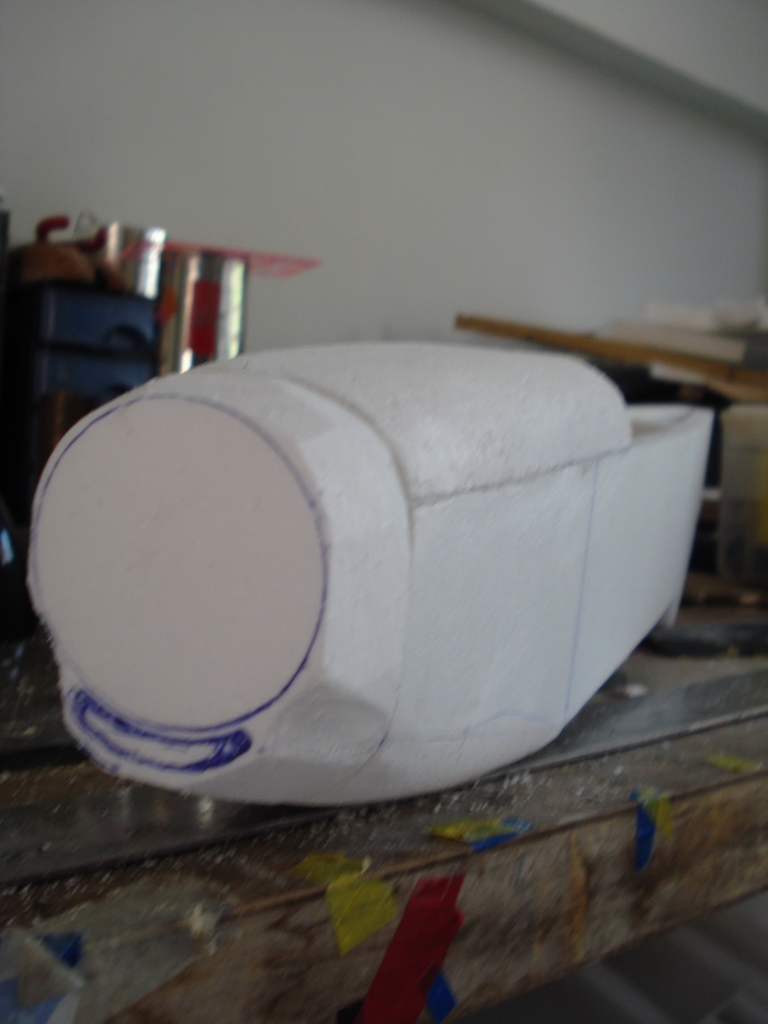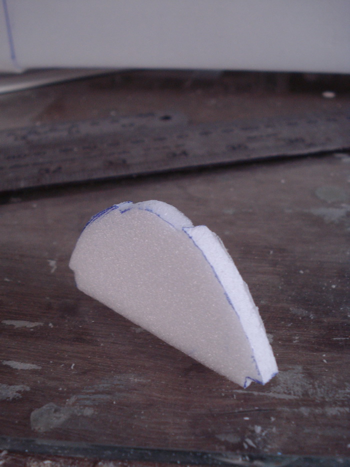 จากนั้นผมวัดลงโฟมในส่วนที่เป็นด้านข้างลำตัว (เพราะส่วนนี้แบนๆจึงใช้ โฟมอัดห้ามิลได้)