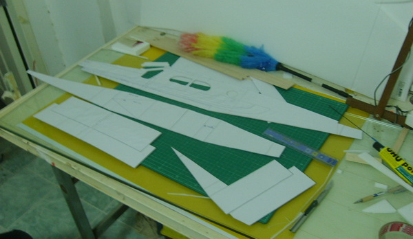 มาต่อกันครับ หลังจากได้แบบมาแล้วก็ตัดโฟมตามแบบได้เลยครับ สังเกตแบบในส่วนท้องเครื่องผมใช้แบบเดียวกันแต่ขีดเส้นบอกว่าส่วนไหน ทำอะไร และในส่วนท้องเครื่องด้านหน้า ผมใช้โฟม2 ปอนด์ 1 นิ้วมาทำครับเพื่อเพิ่มความแข็งแรงกัน..