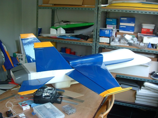 ....วางเครื่อง.46 กลางลำ จะทำให้บินได้ดีคงไม่ง่ายครับ โดยเฉพาะ Body ยาว 1.70 ม. ผมจึงใช้