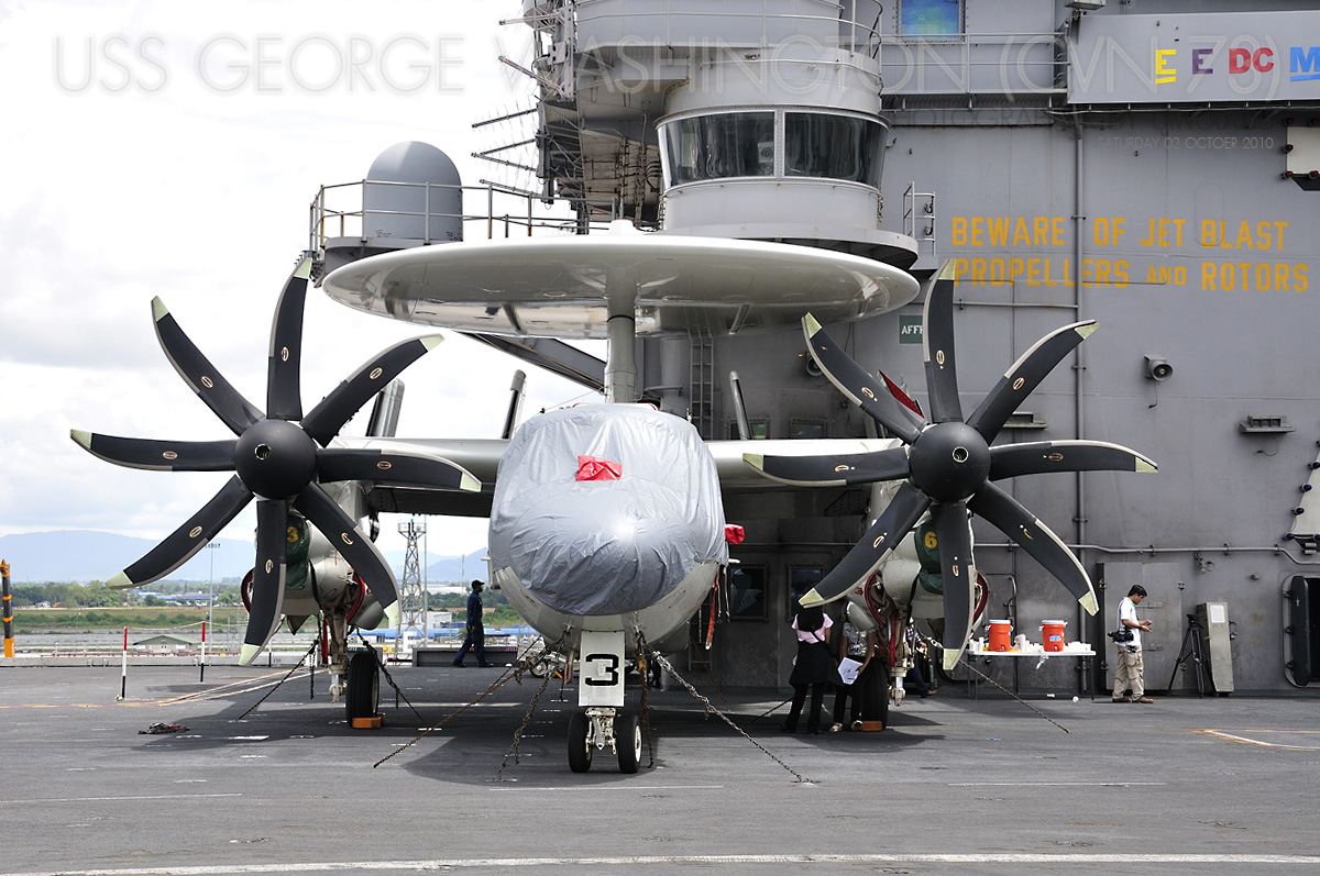 ด้านหน้า E-2C HAWKEYE...ผมสงสัยอ่ะว่าทำไมใบพัดมันเยอะใบจัง ไม่โหลดเครื่องหรือไง