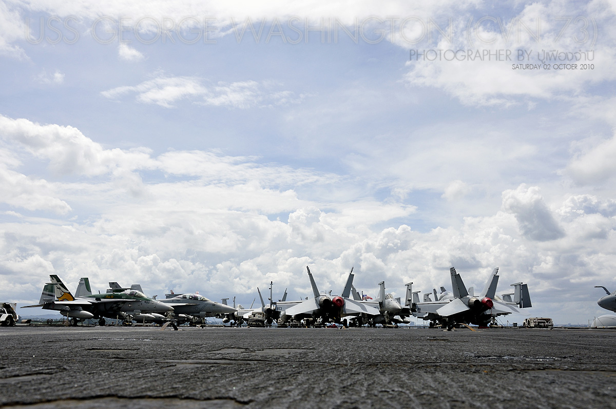 ส่วนใหญ่ก็จะเป็นเจ้า F18 HORNET ประจำการบนเรือลำนี้...รู้สึกว่าท่าน P1 กำลังทำใช่หรือเปล่า..