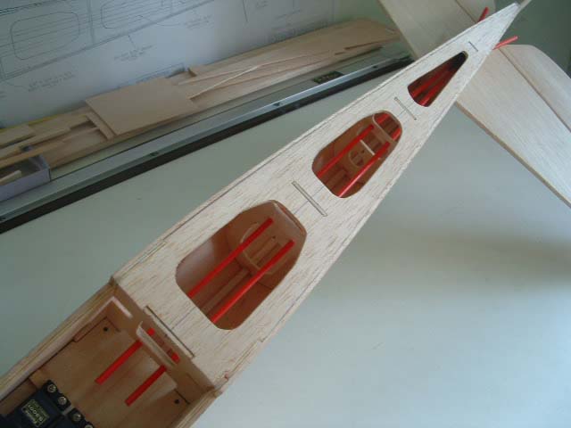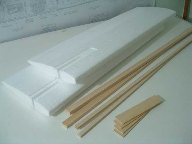 ตัด สแตร็ป และ เอลเวเตอร์ ด้วยไม้ บัลซ่าขนาด 6 มิล โดยทำแพทเทิร์นด้วยกระดาษแข็งขนาดเท่ากับแบบ แล้วนำมาทาบตัด ลงบนไม้บัลซ่า