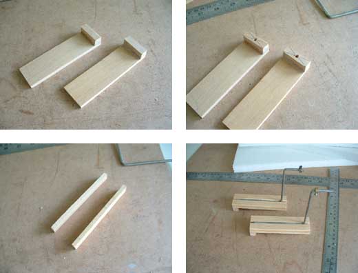 แล้วก็ใช้ไม้เนื้อแข็ง หรือไม้อัดหนา 6 - 8 มิล มาตัดขนาดกว้าง 3/4 นิ้ว หนา 10 มิล ยาว 1 นิ้วครึ่ง ติดตั้งเข้าไปเป็นจุดยึดสกรูพลาสติกสำหรับยึดปีก