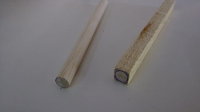 แล้วก็มาทำแท่งที่เอาไว้ติดที่ปลายปีกกัน ใช้บัลซ่ามาเกลาให้ได้ขนาดกลม 15 มิล