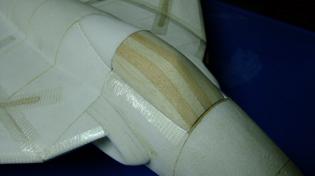แล้วก็ดามสปาร์ด้วยไม้บัลซ่าเนื้อแข็งๆขนาด 6X6 มิล บนปีกทั้งด้านบนและล่าง