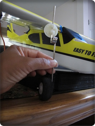 ทีนี้ก็นำไปติดตั้งกับแป้นไม้ที่หัวเครื่องบินครับ เมื่อติดตั้งล้อครับทั้งหน้าหลังแล้ว