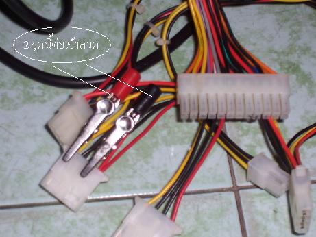 4.สายที่ต่อไปทำชุดความร้อน..คือสายส่วนที่เราเอาไปต่อ CD-ROM หรือ Hd ที่มี 4 สาย เอา ต่อตามรูป