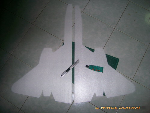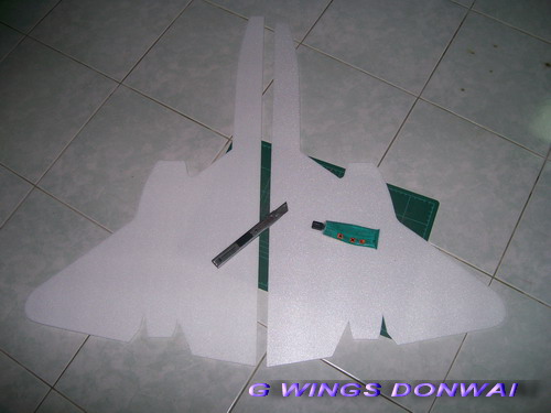 โฟม 3 มิล. ตัด 2 ชิ้นเหมือน 5 มิล. ปิดทับสปาแล้วขัดชายขอบหน้า - หลังปีก