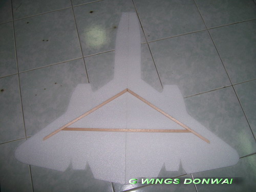 เริ่มจากปูพื้นด้วยโฟมอัด 5 มิล. ต้องของคุณ คุณปราโมทย์ที่ให้คำแนะนำตั้งแต่เริ่มทำ SU 27 เพื่อความแข็งเรงแทนที่เคยทำแยกพื้นลำตัว ปีกหน้าและปีกหลังครับ