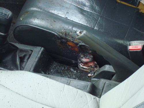 บังเอิญจารย์ Can เดินผ่านไปที่รถของตัวเอง มองเห็นเหมือนใครมาจุดพลุเล่นอยู่ในรถ เปิดดู อ้าว...ไม่ใช่พลุ แต่เป็นแบตฯ Lipo ของครู G ที่ชาร์ทเอาไว้ กำลังจ่ายเปลวไฟออกมา แตกตื่นกันทั้งสนาม ดับเสร็จอย่างที่เห็นในภาพ