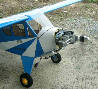 อาทิตย์ที่ 4 พ.ค.51 คุณไก่ เตรียมทดสอบผลงงานซึ่งพึ่งประกอบเสร็จเมื่อเช้านี้เอง กับ Piper J3 เครื่องยนตร์สี่จังหวะ ASP FS70AR